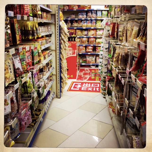 Then I went to a supermarket. Not a huge one but a real one, not like the little store I went with my contact. I bought something to drink and looked for something for breakfast which wasn’t so easy. As the guy from the flight told me, there is not much bread in China. But there are some buns covered with pork which looks like wool and I saw them and bought them. But the Chinese seem to buy those instant noodle soups where you can just put hot water in. And hot water you can get on many public places.