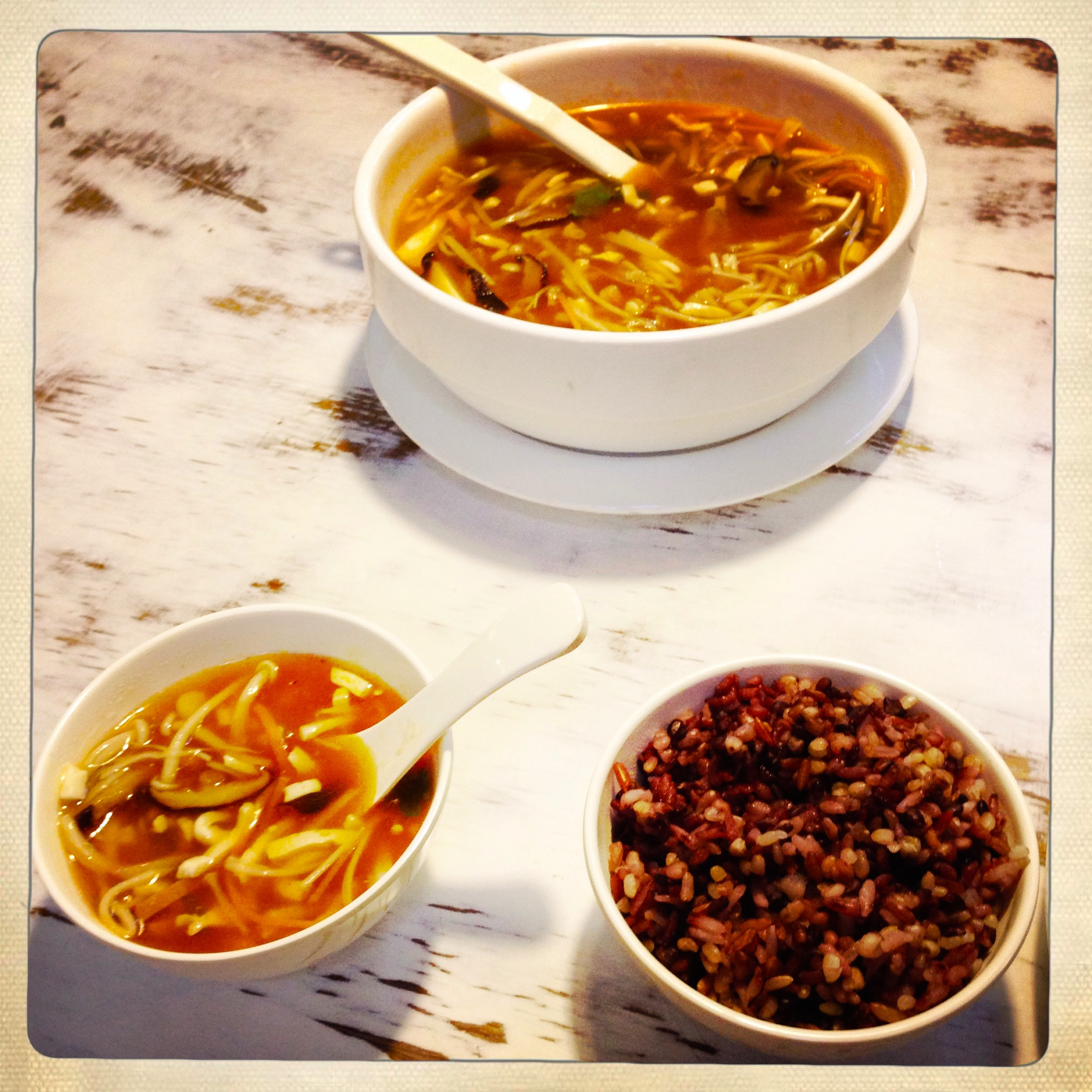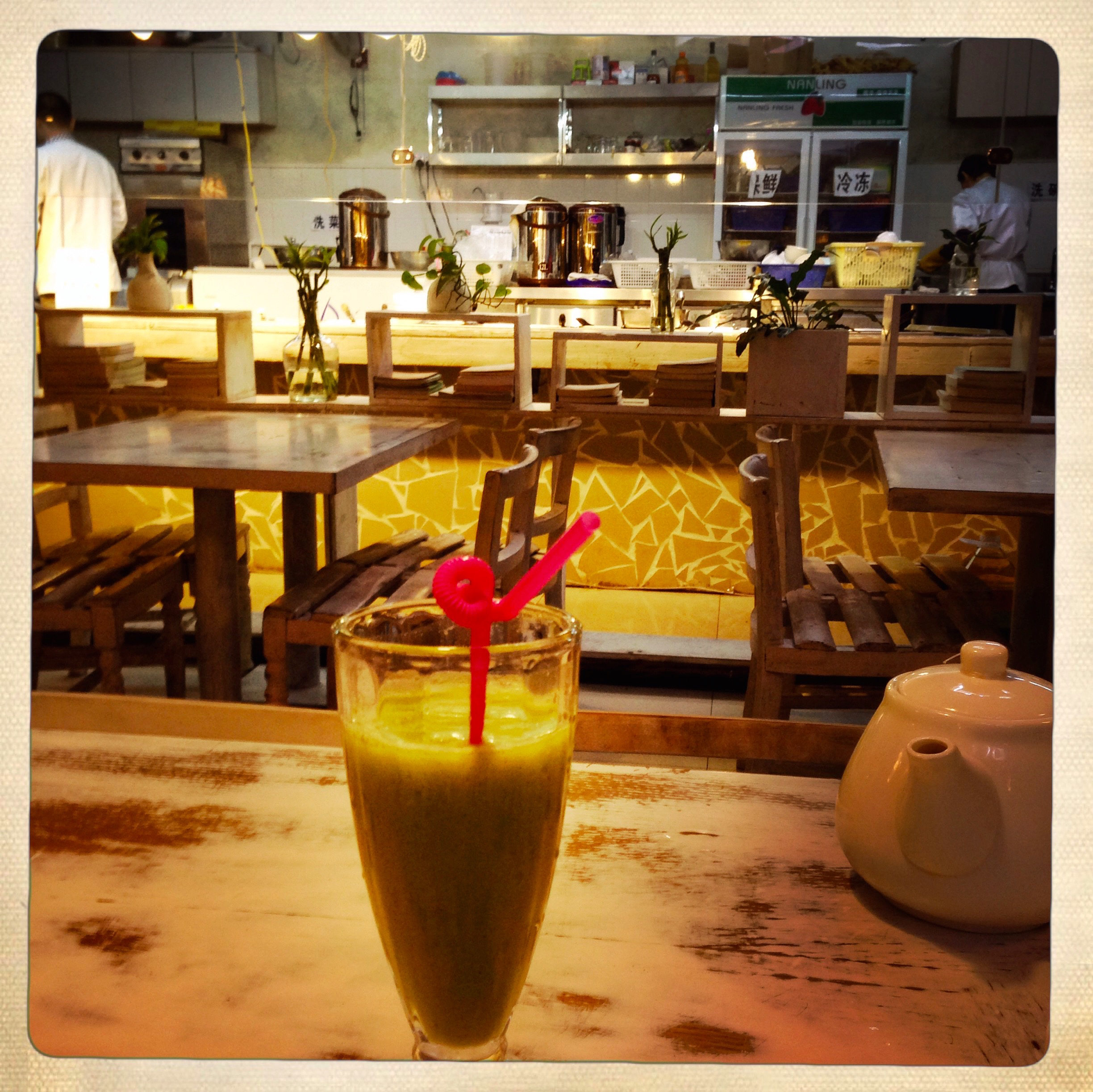 That sounded really good and I wanted to visit the place anyway so I went back to the vegan restaurant. My first vegan restaurarant I had spottet so far in China, I couldn’t believe it! China goes vegan as well, nice! The restaurant was a pleasure! I can really recommend it to anyone visiting Shenzhen not only vegans. It might be a bit more expensieve than the ordinary chinese restaurant but is really worth it! Just take Line 1 to Chegongmiao and take Exit D. The restaurant is just around the corner. They have books to read, even some in English, the boss was speaking a little English, the staff isn’t. They also have raw food and food lightli cooked (about 40 degrees). The place is very light and clean, very cosy! The house cat was strolling around. The stuff is absolutely lovely and the food was great! A main dish costs around 48 yuan and I had two of them, because I wanted to try. The soup was really spicy and huge! And I had the best tea in my life, but unfortunately cannot remember the name.