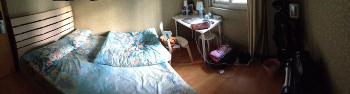 We went up to the tenth floor and I entered a small apartment. I got two keys and a number code to my room and left a deposit for the keys. My host which actually lives in the place as well, wasn’t there and should come back on Monday. That wasn’t what I expected but more what I was afraid of. No host family but just a single room and a toilet to share. The toilet, by the way, very small and I didn’t see the shower at the first glance. But there is a shower head at the wall and it seems like you just have to take a shower next to the toilet on the bathroom floor. I’m so spoiled as a Swiss but I’m not used to something like that. How will I take a shower without flooding the whole place? Doesn’t seem like this is possible, but I’m gonna find out.