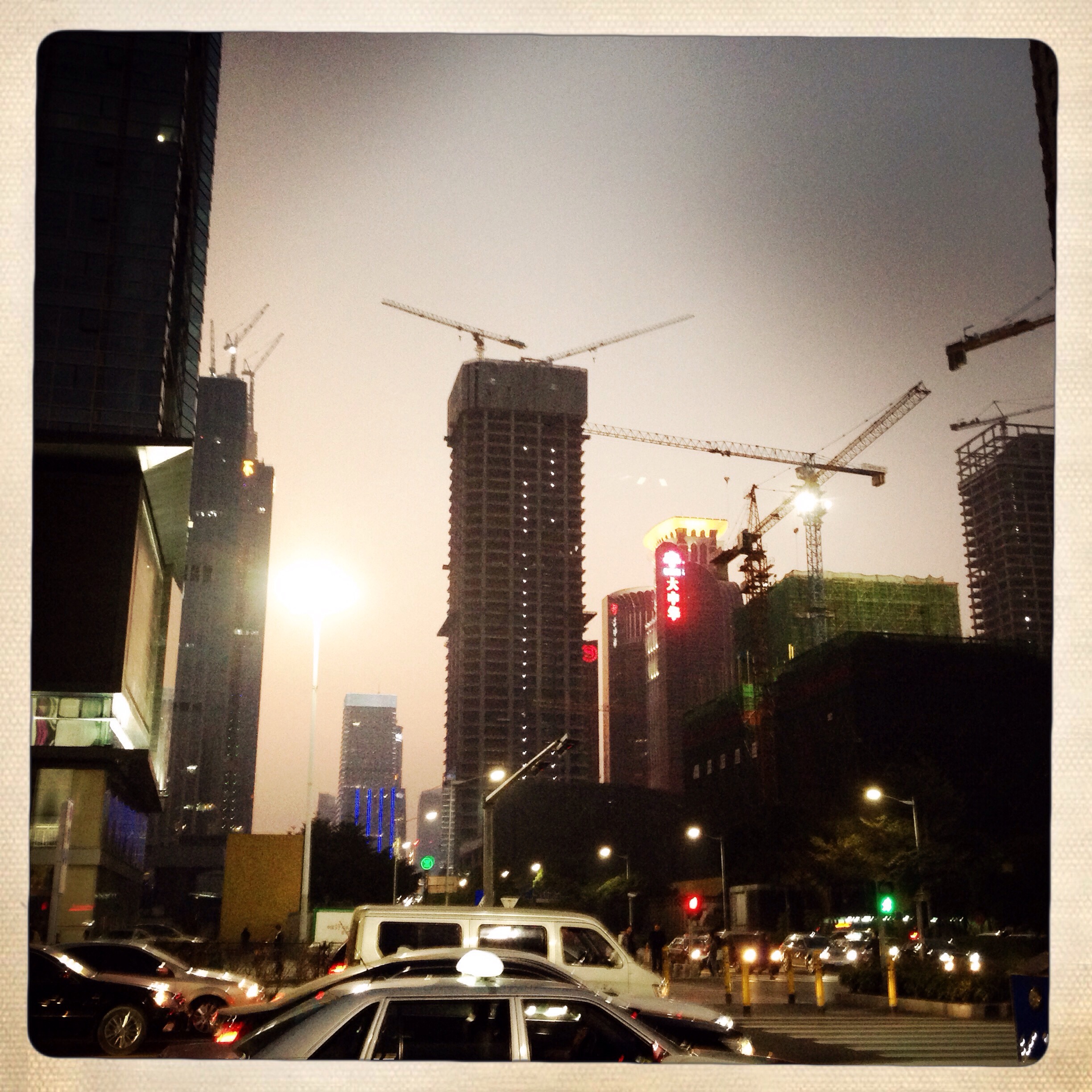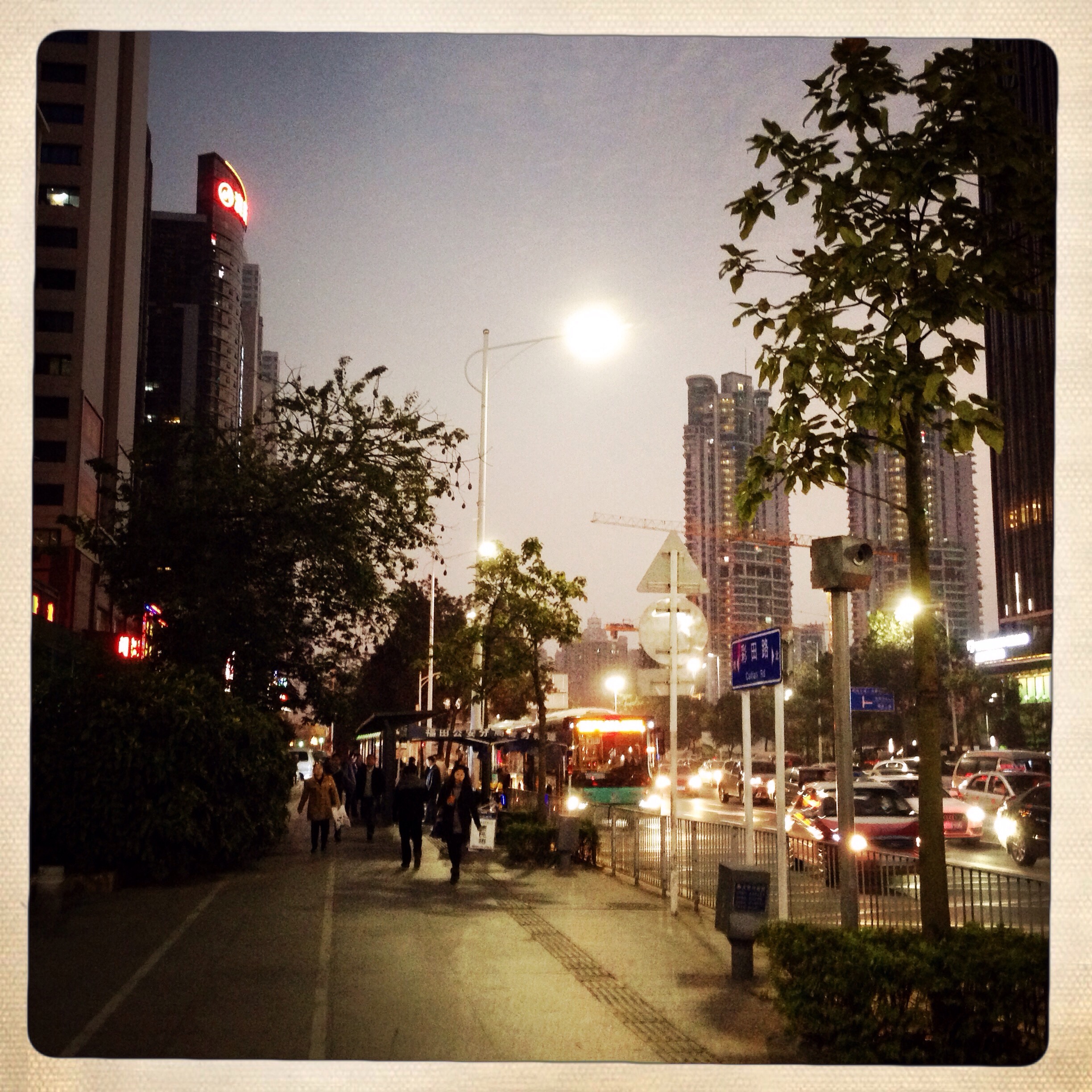 I slept longer than I thought after waking up several times during the night and watching my handy if there is any news from home. I eat my noodles, took a shower and packed my bags to get the shuttle bus of the hotel this time. A very nice service bus which took me safely back to the central station where I felt a bit lost the first time. But it wasn’t a problem at all, I found the metro and had my printed plan which line to take. I had no idea how to pay for the ticket again, but again it was very convenient, there was a ticket vending machine where you could just tap on the station you want to go and pay the price. I had to change lines several times, but it all was very easy and last I took the east rail line to the futian checkpoint where I should cross the border to China. I had to wait about an hour at the immigration queues. First you have to pass the queue to leave Hong Kong and then another one to enter China, where I had to fill out another form. The police people don’t really talk to you, just look at you and your passport and your data, that’s all, but my validation took a bit longer and I’m sure that I was the only european face in the whole queue. But lots of Chinese with diapers bought in Hong Kong were in front of me. I cannot imagine diapers being cheaper in Hong Kong, for the prices and the shops seemed very common for me. All the big names I’ve seen in Hong Kong, also a Porsche Design Store (and other very expensive labels). But maybe the diapers are better for the children? I have no idea!